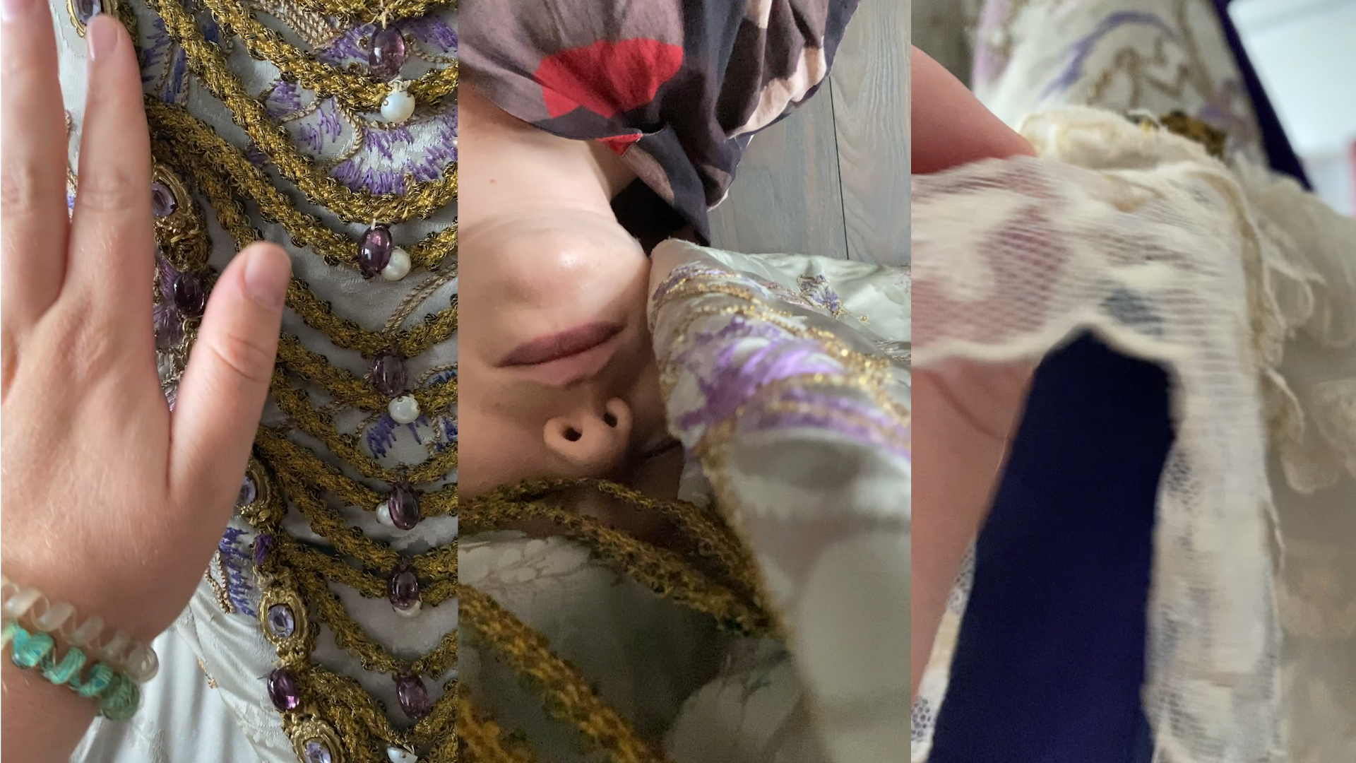 IP - I continue to be grateful that the team of the Salzburg Festival Archive facilitated my tactile access to their collections without hesitation. In the process of touching my way through opera and theatre history, I learned that sight is quite limited when it comes to knowing archival materials in detail. Often, touching a dress from the costume storage would reveal a hidden knot of embroidery yarn hidden underneath a corsage, or would make apparent that a diamond was made from plastic. I also realized how limited my own language was when trying to put these tactile experiences into words, an experience that resonates with the writings of blind scholars such as Lilian Korner. This is why one outcome of my project is a Tactile Descriptions Workbook that offers guiding questions and tactile sensing exercises to feel out tactile language. Your question on preservation as a reason that materials are kept out of touch is spot on and also concerns archival digitization practices. Many contemporary 3D scanning techniques used by archives follow visual paradigms by scanning outlines of costumes for visual digital representations. My hope is that future preservation does not rely on visual preservation alone, so that we do not lose the rich haptic histories that artifacts can teach us about.