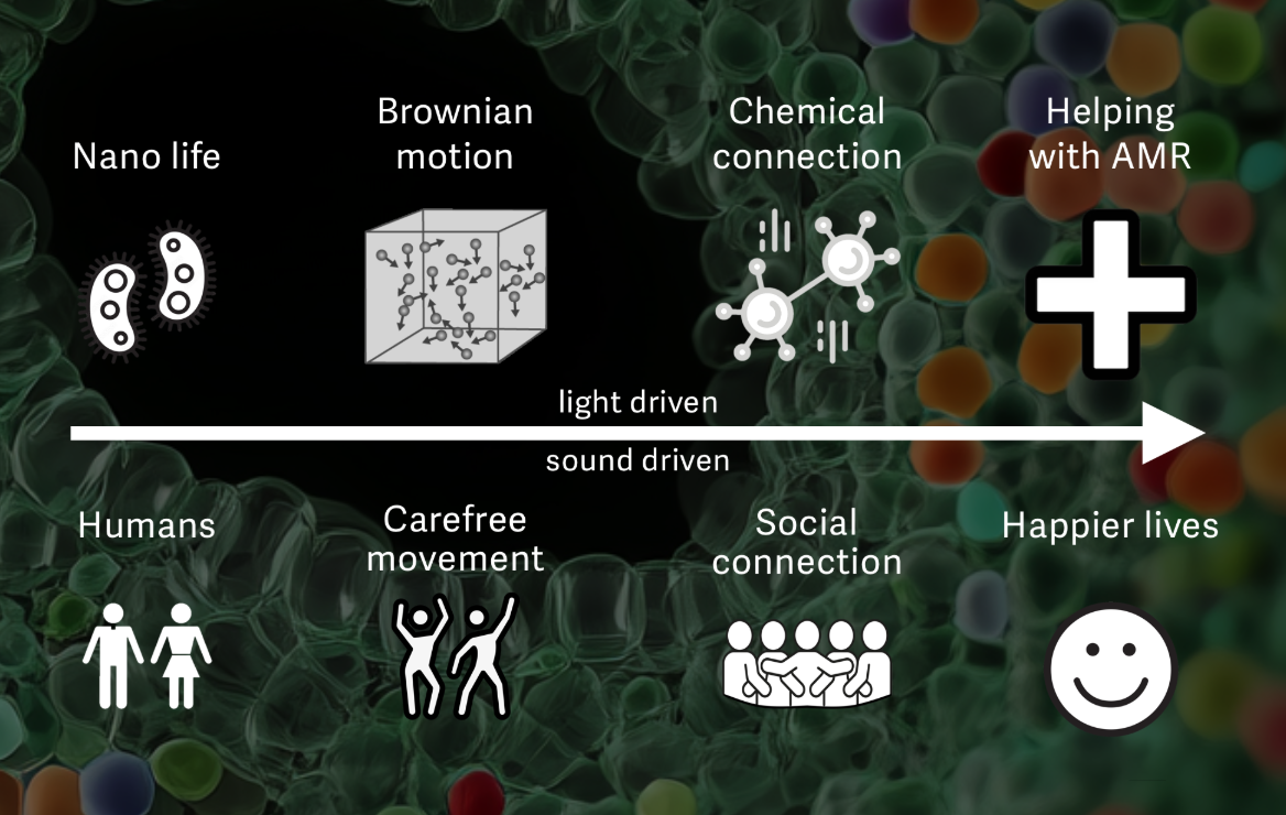 You’ll be driven by music and interactions that embody how researchers work with light, viruses and bacteria to further AMR research. While also feeling the story of love, connection and dancing that is happening inside you right now.
