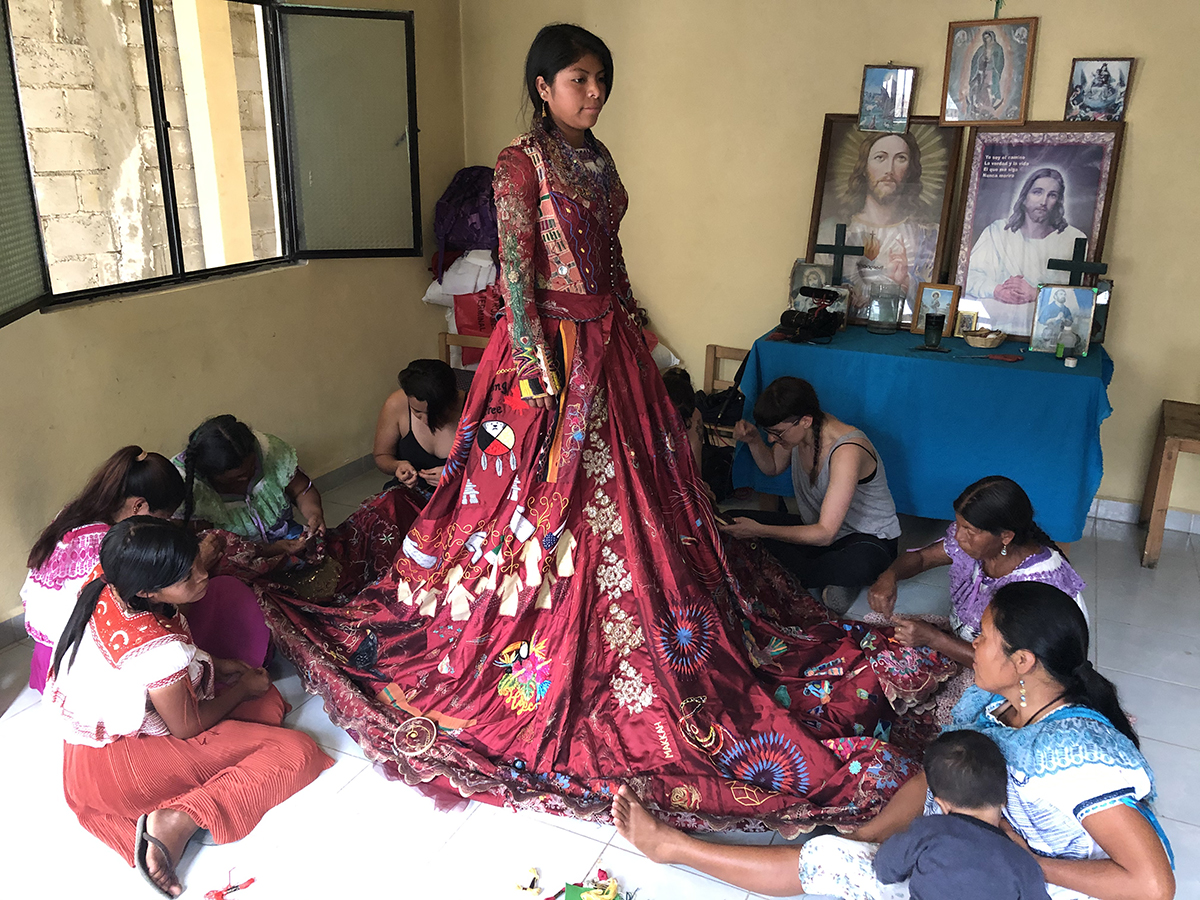 5. Embroidery group in Aguacatenango, Mexico. Dress worn by Vanessa Aguilar Juarez, 2021